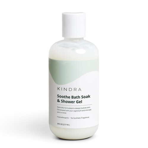 This gentle Bath Soak & Shower Gel is perfect for delicate skin. Hypoallergenic, free from synthetic fragrance & pH balanced, this gel has been specially formulated with your intimate skin in mind! Soothe uses Nourish-3 Complex to deliver soothing, hydrating ingredients directly to the skin. Clinically studied biomimetic peptide calms the skin, chamomile reduces inflammation, and oat kernel extracts hydrate. Safe, effective formulations use clinically backed & evidence-based ingredients. Add to a warm bath, then enjoy a long soak. Kindra partnered with physicians & researchers to deliver a bath product that is vagina-friendly! It's also safe to use as a shower gel for your intimate skin! Subtle notes of oat, chamomile, and shea help relax your body & mind. 8 fl oz.