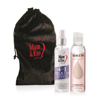 A must-have for all anal lovers! This starter kit comes packed with everything you need for anal explorations. A&E Forbidden Anal Lube is extra thick to better handle the unique challenges posed by anal sex and toy play. A&E Misting Toy Cleaner is a sanitizing and deodorizing spray that works with all types of sex toys to keep them looking and performing at their best. A&E Velvet Storage Bag is the perfect place to keep all your anal items, so you can pull them out quickly and easily when the mood hits! Valued at $38.97.