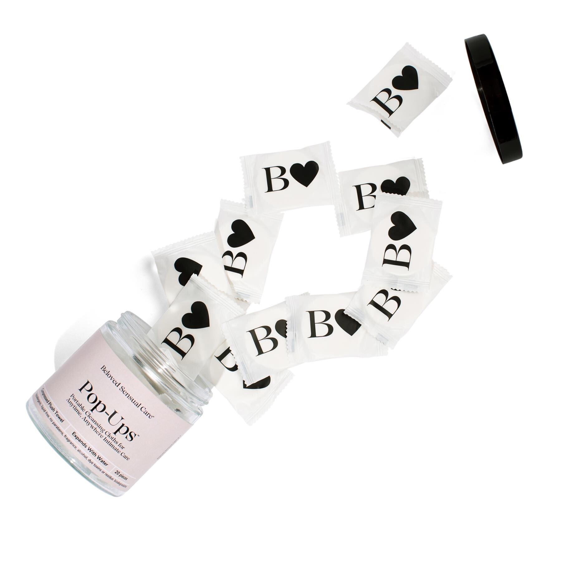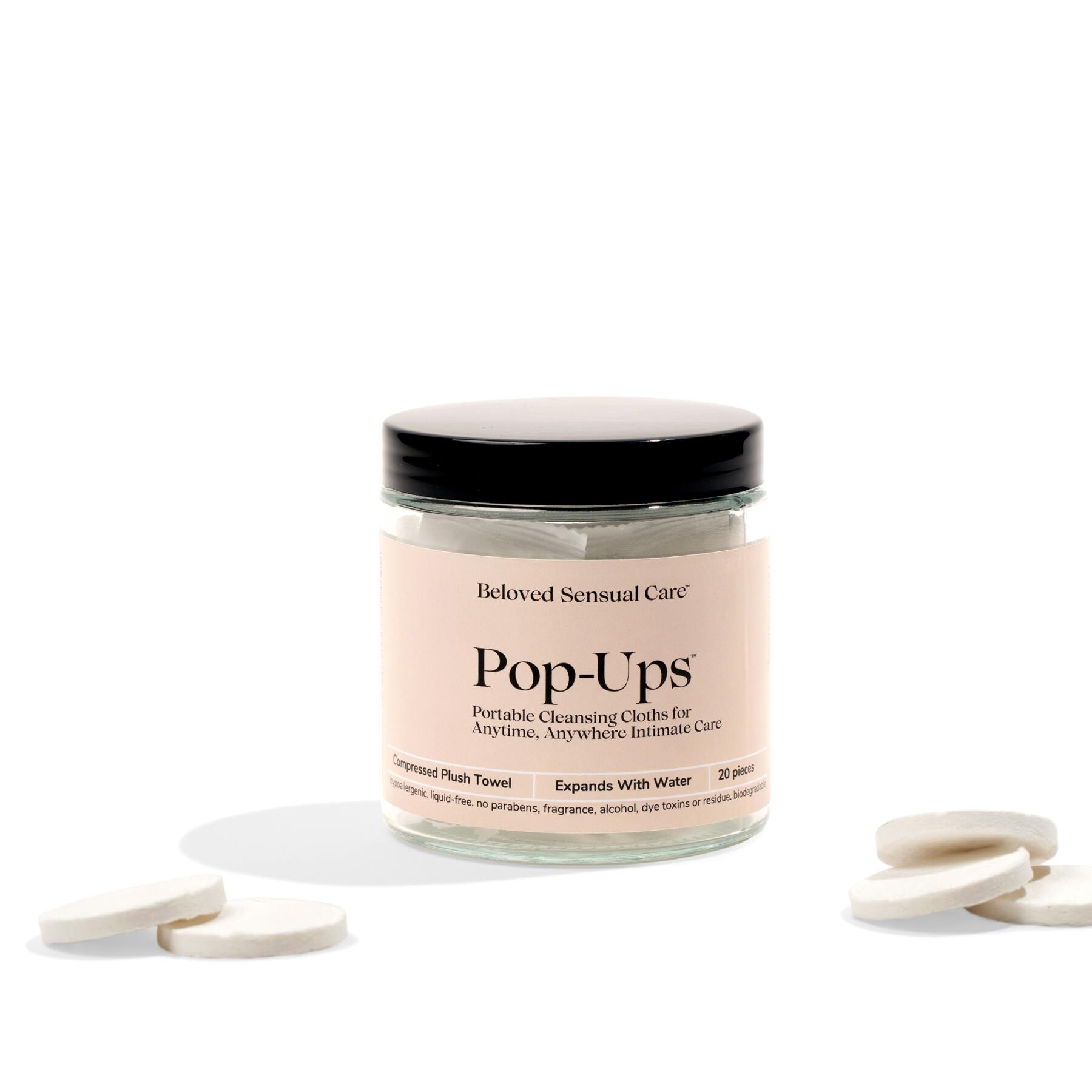 These compressed plush towelettes expand with water to transform into the perfect intimate cleansing cloth. Quickly and easily refresh yourself before or after intimacy and whenever the need arises. 20 individually wrapped towels easily pop into your purse, gym bag, suitcase or glove compartment. Perfect for unexpected rendezvous, vacation sex and refreshing after leaks or exercise. No solutions, just add water - these Pop-Ups are free of harsh chemicals like parabens, fragrance or alcohol. Biodegradable, just toss after each use. 100% plant fiber. Expands to 8 by 12 inches but travels even smaller.