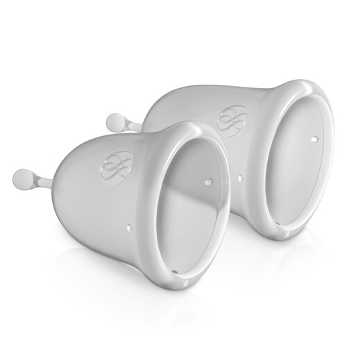 Reduce your leaks, go longer between changes and never worry about running out of pads or tampons again. The Jimmyjane Intimate Care Menstrual Cups 2 Piece Set comes with 2 sizes of menstrual cups to keep you covered from light to heavy flow days. The body-friendly silicone is flexible for easy insertion and a perfect seal to your body.