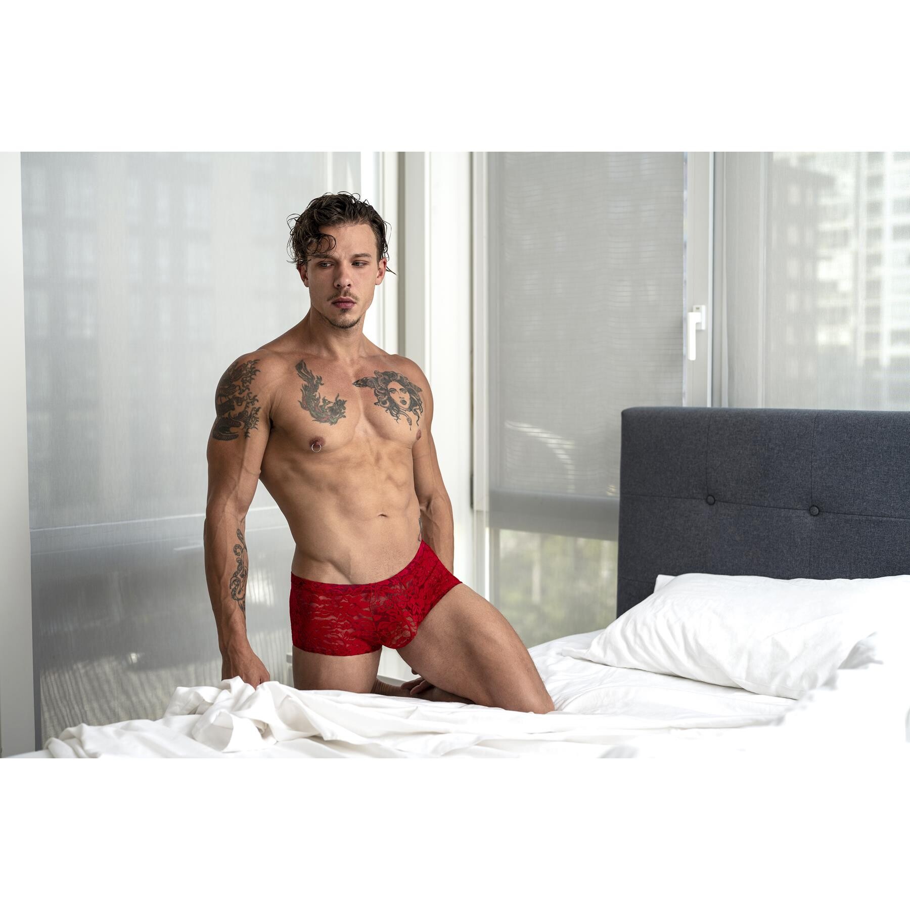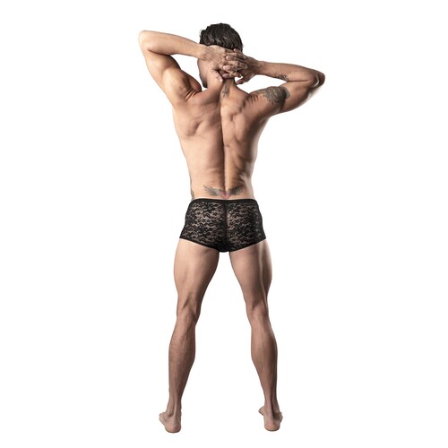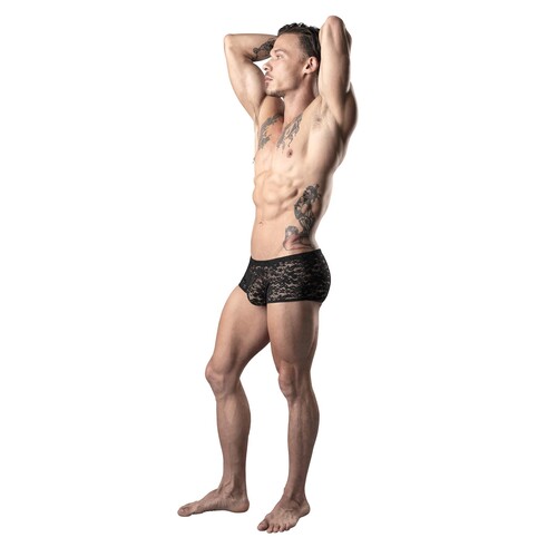 This stretch mini short wraps you in soft, breathable lace and mesh as it draws attention just where you want it. Its subtle floral pattern and scalloped lace add delicate touches. In back, sheer mesh highlights your hot buns! In front, the opaque contoured pouch accentuates what you’re packing. Plush elastic trim. Nylon/Spandex. Imported.