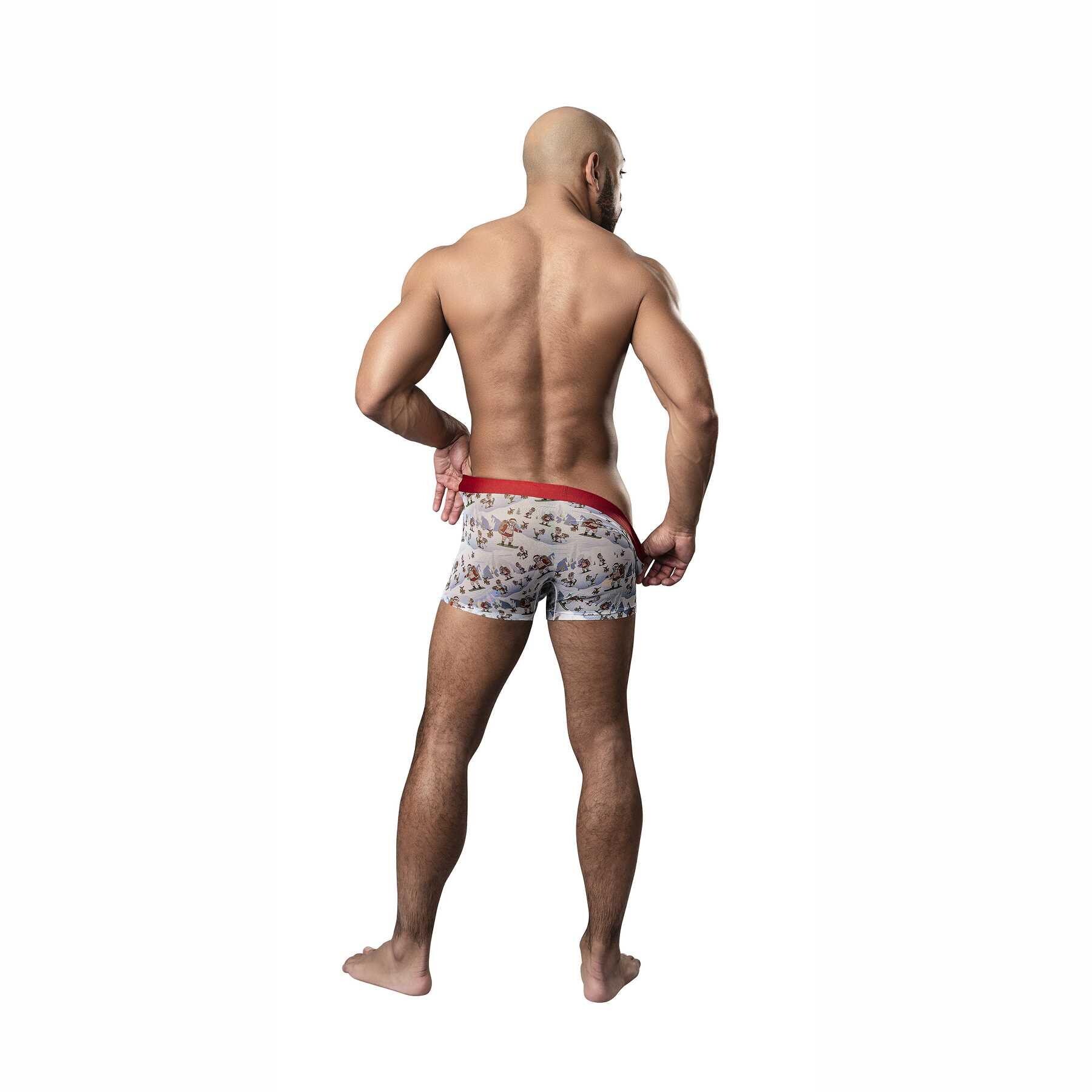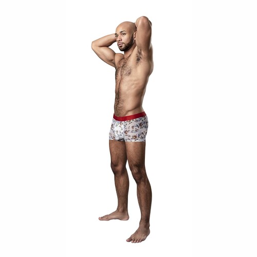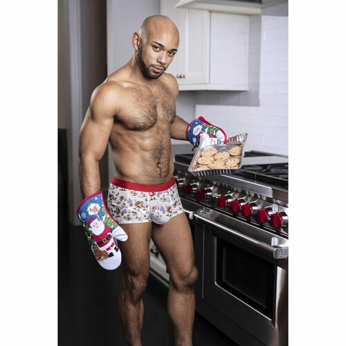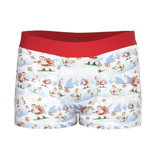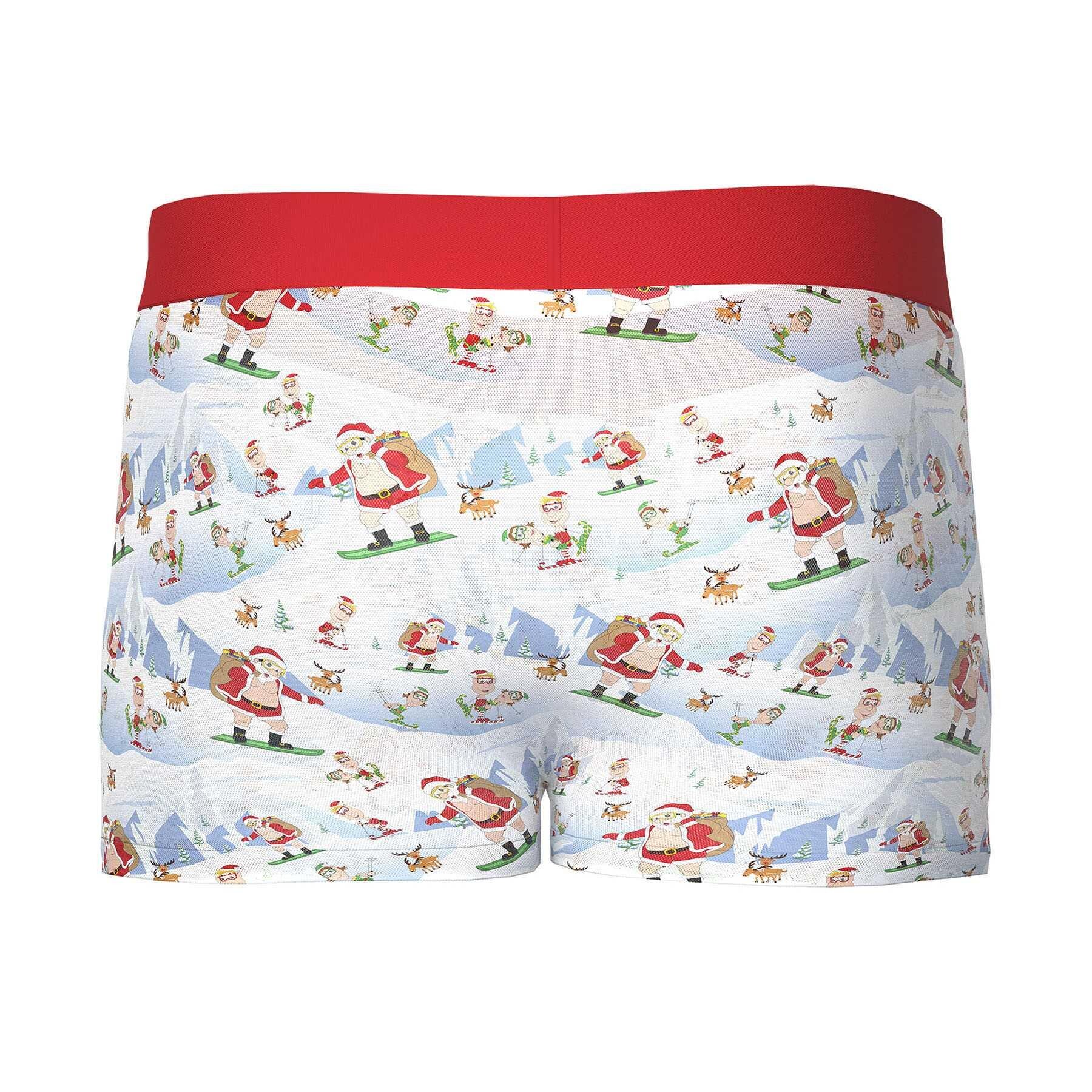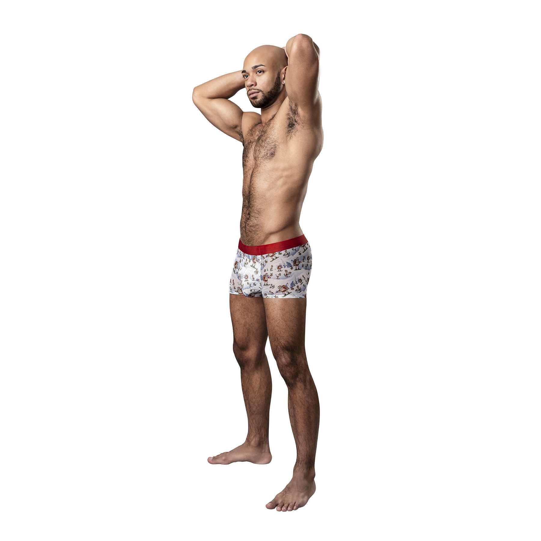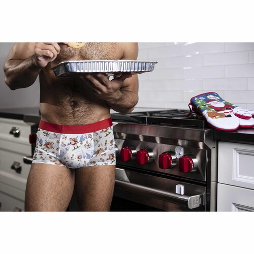 Have a very naughty holiday in these mesh boxer shorts! The festive and comfortable red waistband keeps things in place. Below that, sheer stretch mesh is patterned with snowboarding Santas, frolicking elves, reindeer, and fir trees! But all eyes will be on your big bulge centrally positioned in the front pouch. Polyester/Spandex. Imported.