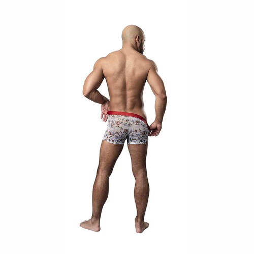 Add some adult spice to your holiday celebration in these fun and frisky boxer shorts. A supportive and comfortable bright red waistband draws attention south. Flash your hot buns through the sheer material in back. In front, a supportive pouch makes your package look huge. When your audience leans in, they’ll be able to see everything – even the light-hearted holiday pattern complete with elves, Santa, reindeer, and more.