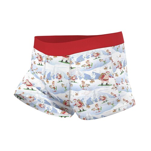 Have a very naughty holiday in these mesh boxer shorts! The festive and comfortable red waistband keeps things in place. Below that, sheer stretch mesh is patterned with snowboarding Santas, frolicking elves, reindeer, and fir trees! But all eyes will be on your big bulge centrally positioned in the front pouch. Polyester/Spandex. Imported.