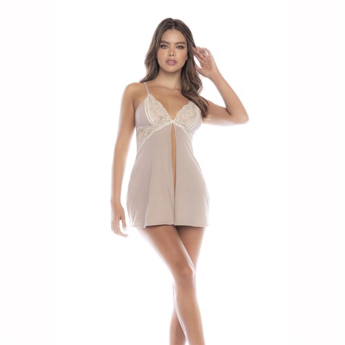 Go from lazy lounging in bed to super-hot seduction in this steamy chemise. Its material feels as soft as your favorite well-worn t-shirt, so it’s a pleasure to sleep in. And when you’re in the mood to get spicy, you’ll appreciate the sexy cleavage-enhancing lace and the revealing split front! It gives you full access for all kinds of adult fun. Adjustable shoulder straps. Polyester/Cotton material, Polyester/Elastane lace. Imported.