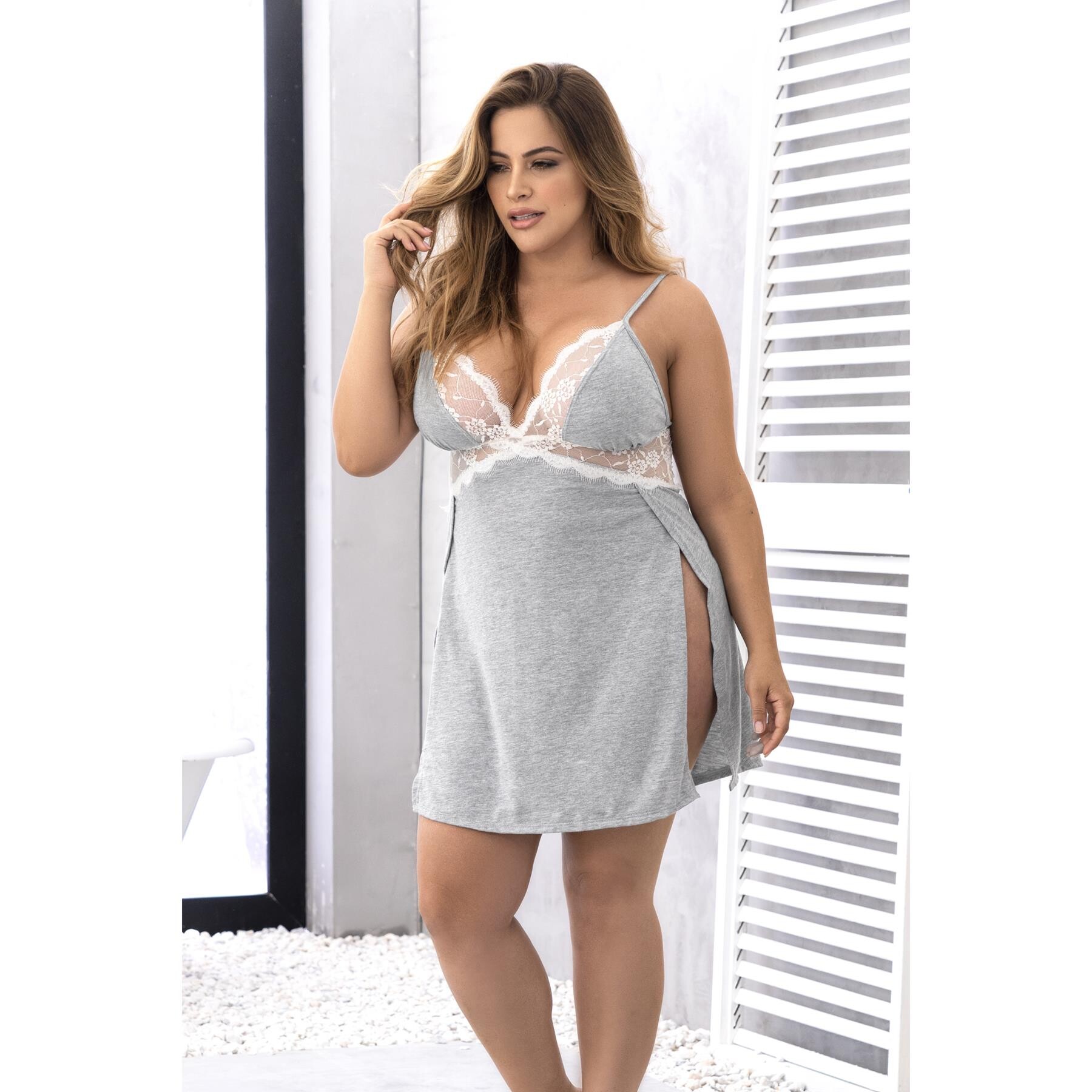 Whether you’re going for “come here” or comfort, you’ll be ready for both in this sexy sleep chemise. The heathered fabric gives you a casual, effortless girl next door allure. The peek-a-boo lace cutouts and high-rise side-slits are seductively suggestive. Wrap-around lace and sexy back straps ensure you’re looking your hottest from any angle. Shoulder and back straps are adjustable, so they sit just right for ultimate shaping and comfort. This flirty little chemise falls just below your booty, but with racy, high slits when you want to show a little more. Cotton/Polyester blend. Imported.
