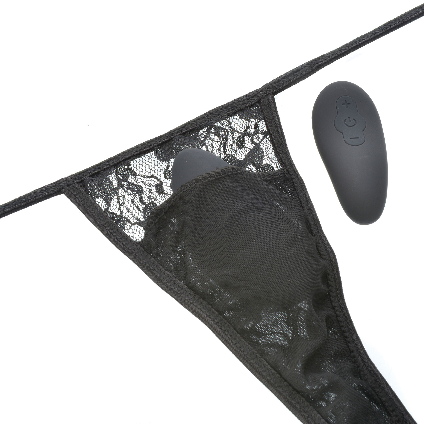 Now make sexy play easy – and fun – to have in public. With just one touch, the remote controls the super-quiet vibrator hidden inside the included panty for the ultimate foreplay fun. Try it out in your bedroom or out on the town – spice up your sex life anywhere you want! Play with 20 vibration modes to keep your bits guessing. Waterproof. Vibe is 3.75 by 1.75 inches. ABS plastic with soft silicone coating. Rechargeable.