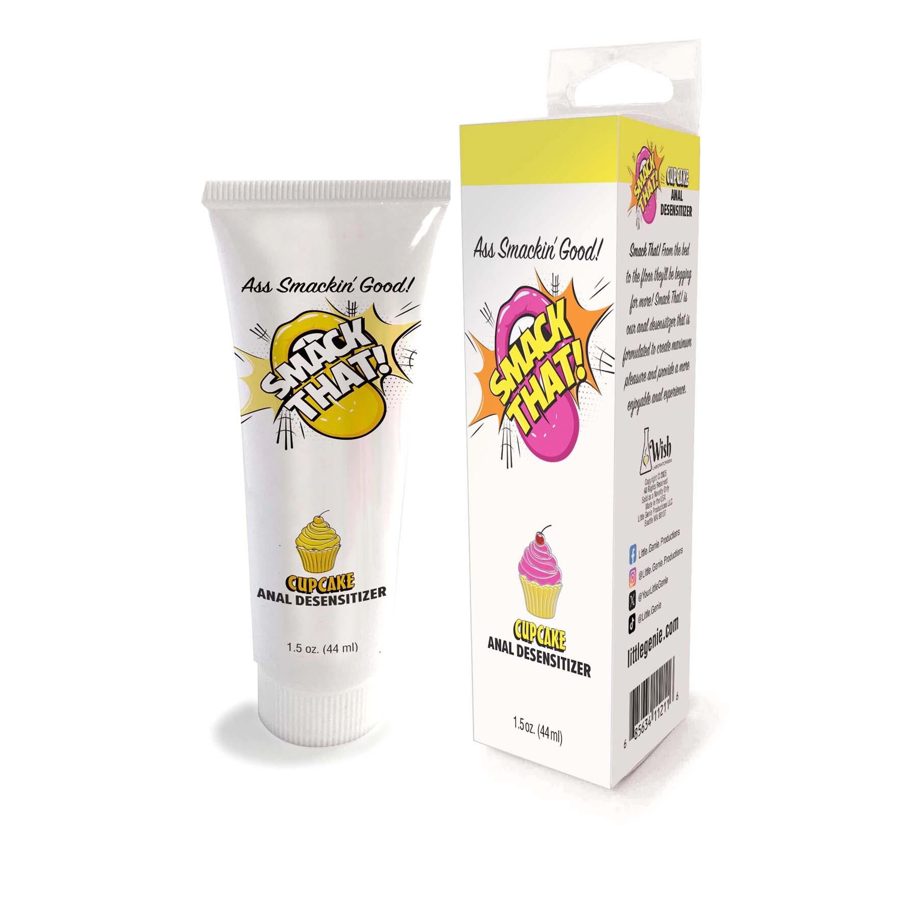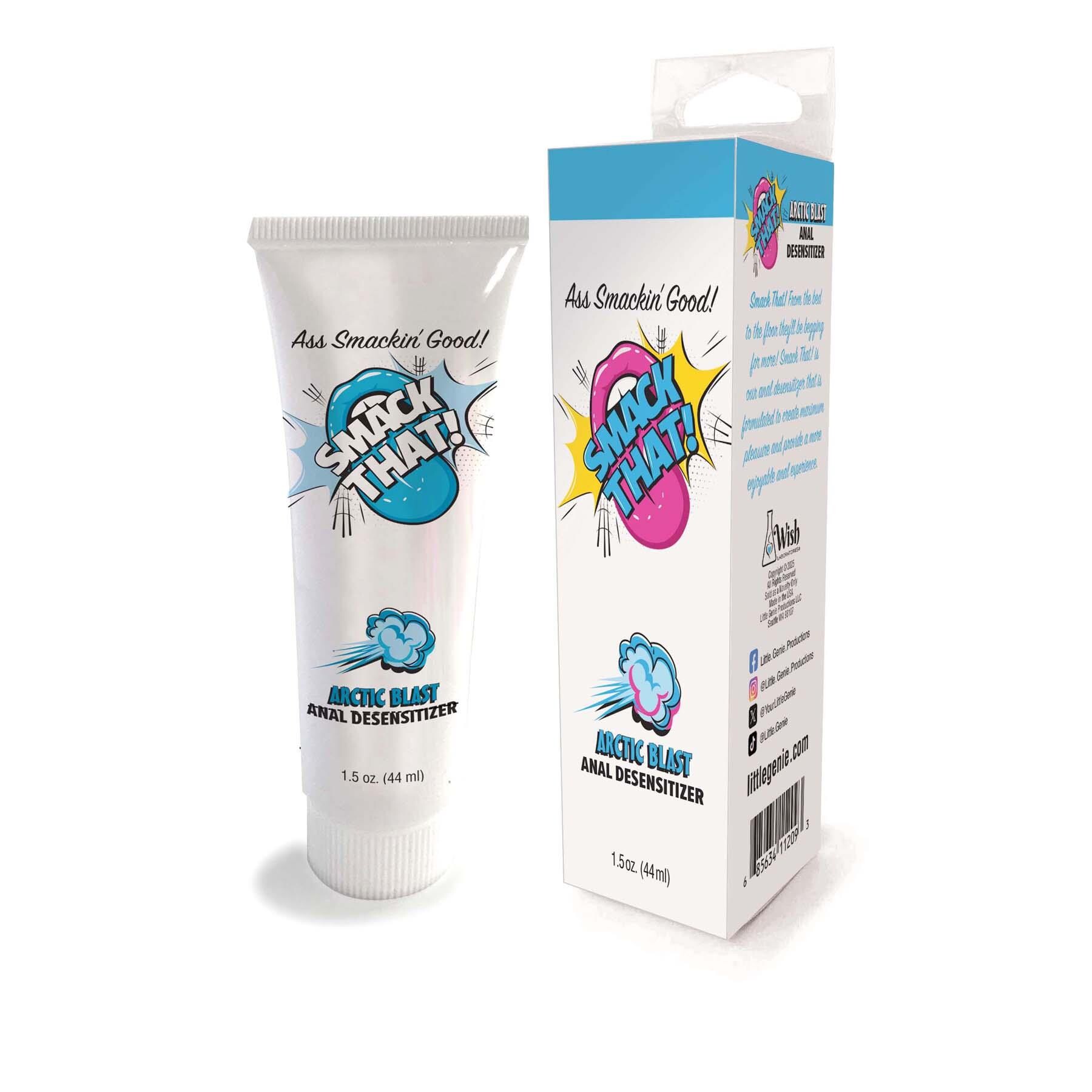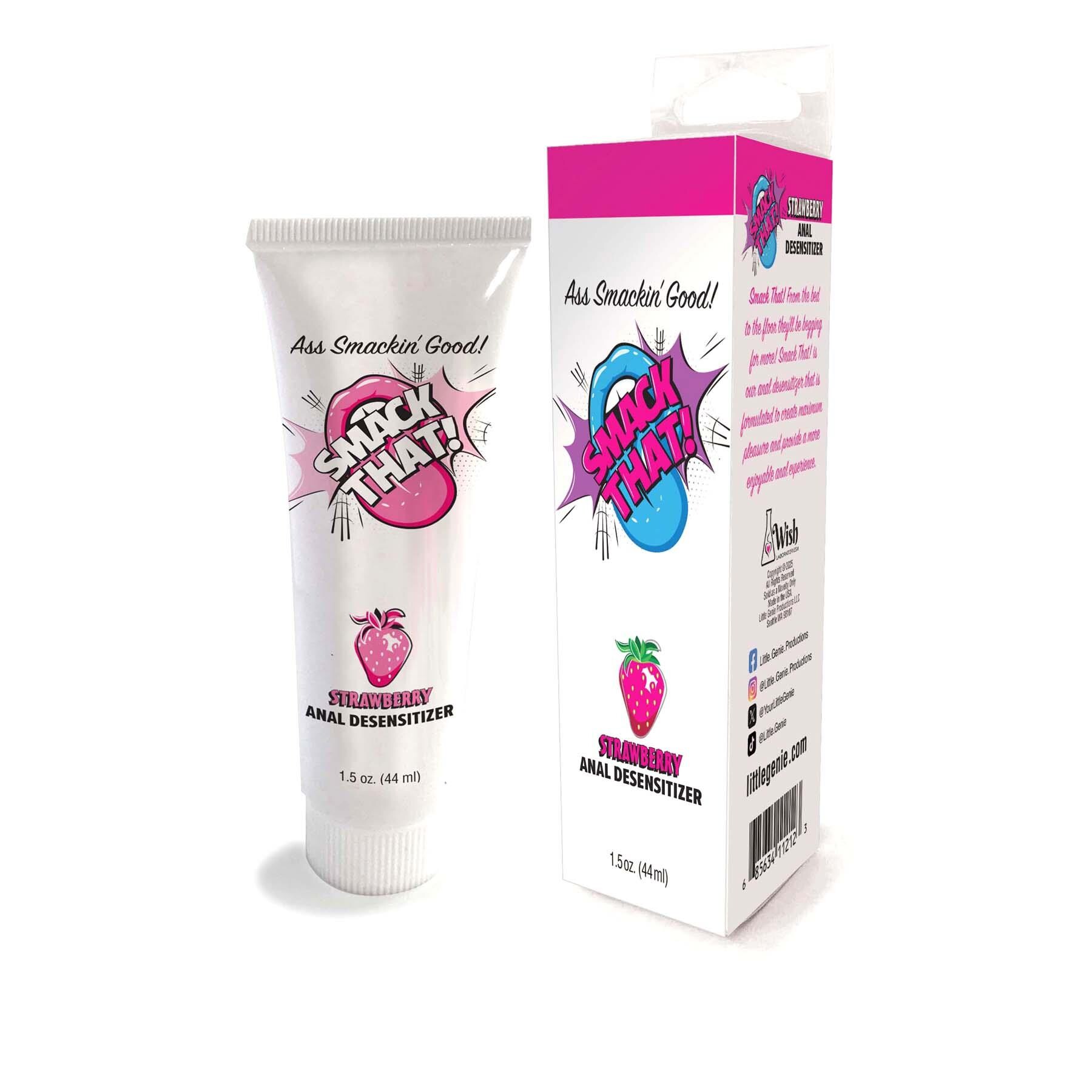 Enhance your pleasure and explore anal with comfort & ease! Smack That Anal Desensitizer gel uses active ingredient lidocaine to numb your nerves and relax the muscles around your bottom. This allows you to confidently & comfortably explore anal with toys or a partner. Apply a dime-sized amount of the gel to the anal opening 3-5 minutes before play. Go unflavored or try delicious flavors like Strawberry, Arctic Blast and Cupcake. Scrumptious flavors ensure you’re ready for all kinds of bootylicious adventures. Be sure to pair this gel with your preferred lube. 1.5 fl. oz. tube. Convenient flip-top for quick & easy access.