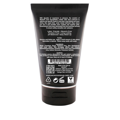 From Wicked, makers of award-winning lubricants! Anal play – including backdoor sex and toys like butt plugs –– needs a thick, rich lube that will keep on going and going. And Wicked Jelle Anal Lubricant was created specifically for anal play. It is thick, stays where you put and lasts a long time, thrust after thrust. A little goes a long way, it’s condom-safe, and it soothes without desensitizers – so you can enjoy every moment. Made in the USA.