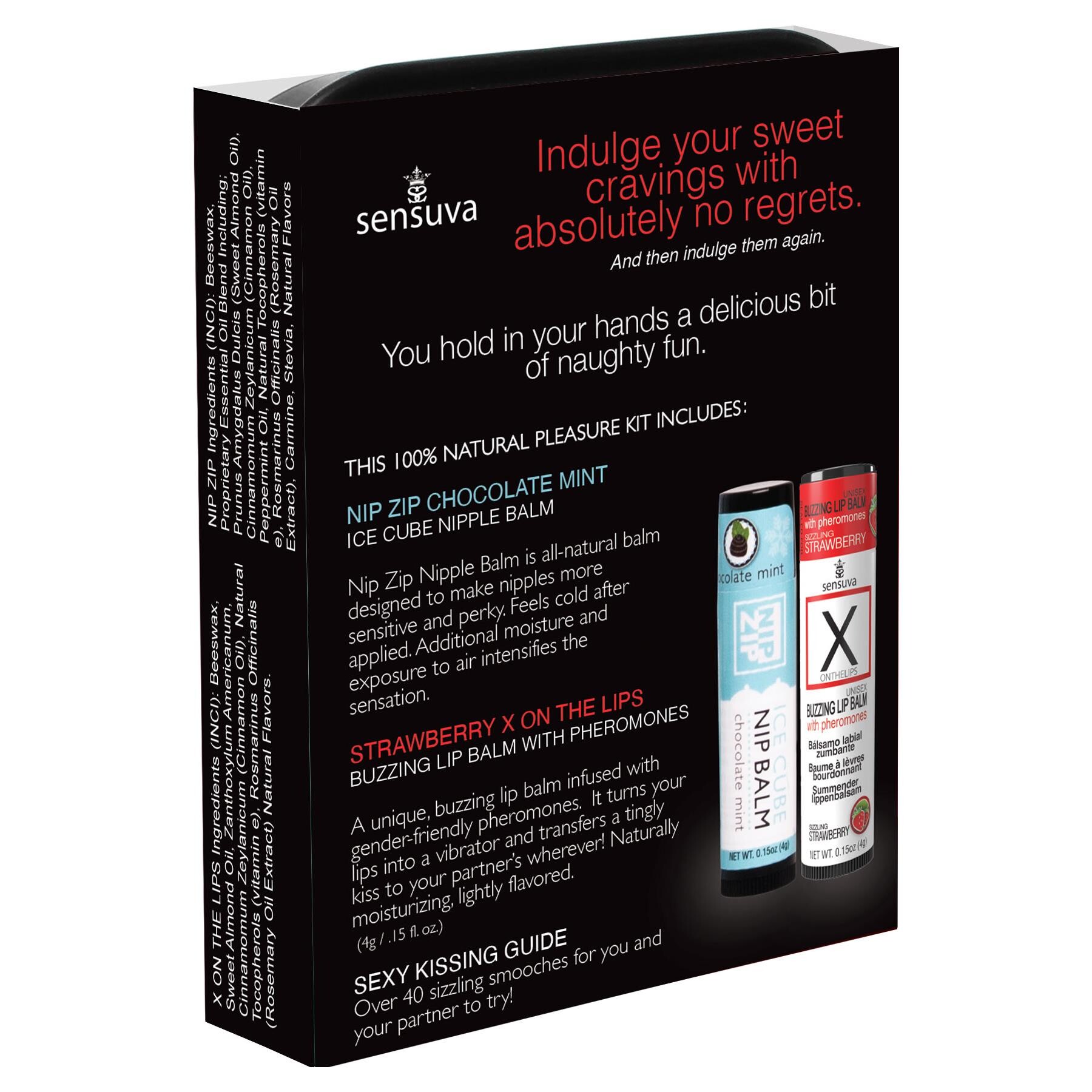 This delicious pleasure kit comes with 2 flavored balms and a kissing guide to amp up your foreplay! Start with the buzzing lip balm, infused with pheromones to cause a fun tingling sensation. It’s like turning your lips into a vibrator perfect for passionate kissing, teasing nipple play and thrilling oral! You even get a sexy kissing guide with 40 new smooches to try. The icy nipple balm makes your nipples more sensitive and perky! In just moments, your nipples feel chilling cold. You’ll enjoy nipple play and teasing more than ever. Each balm is 0.15 oz and lasts for dozens of uses.