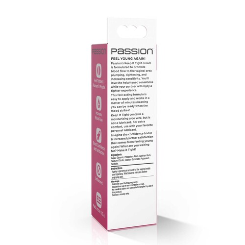 Made in the USA! Increase your sensitivity and pleasure with this easy-to-use tightening cream! Just massage a small amount into your vaginal area. It goes to work in minutes, boosting blood flow and making you feel plumped up and tighter. This makes every touch feel more intense, increases your desire, and helps you build up to body-shaking O’s! Your playmate will love the results, too. Great with your favorite lube. 1.5 fl. oz. bottle.