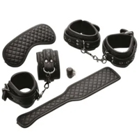 If you prefer something with more kinky options, then give Eve’s Fetish Dreams Intermediate Bondage Set a try! This kinky 6-piece kit comes with a nice blindfold plus two pairs of restraints, a paddle, and more. The blindfold is made from faux leather with a special diamond stitching for a sexy touch.