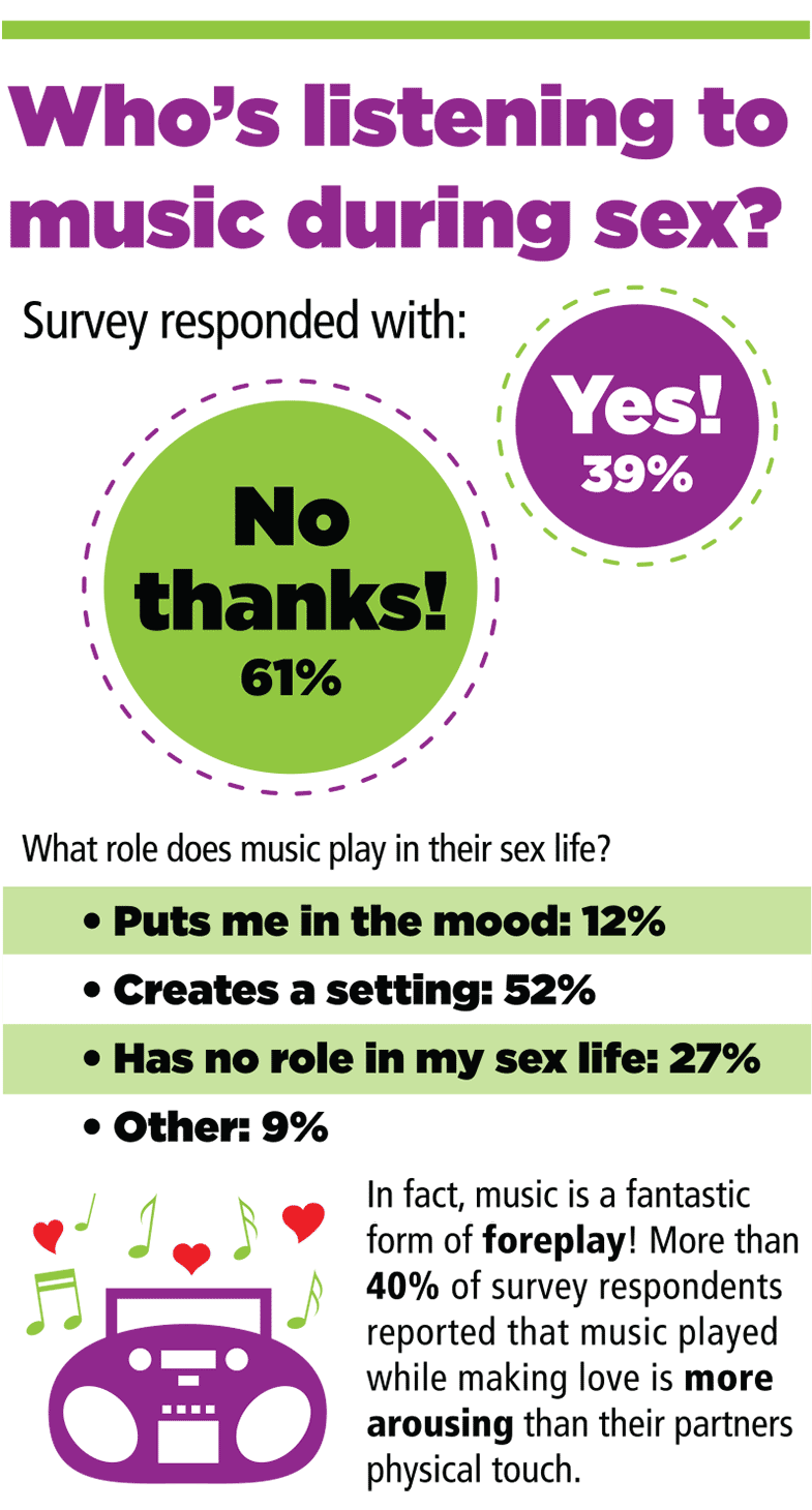 Why do so many people like to listen to music while getting down and dirty? Learn more about the connection between your favorite tunes and sex with this groovy infographic. And then check out the top 10 list of songs that people listen to during sex.