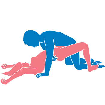 The woman lies down on her back, with her knees bent. She uses her core muscles to lift her torso up, resting her weigh on her feet and upper back. He kneels down between her open legs and leans forward. He should use one hand to support himself while wrapping the other around her lower back to help takes some of the strain off her muscles. This leaves her hips elevated for better G-Spot stimulation, while making deep thrusts or fast-paced pumping easier.